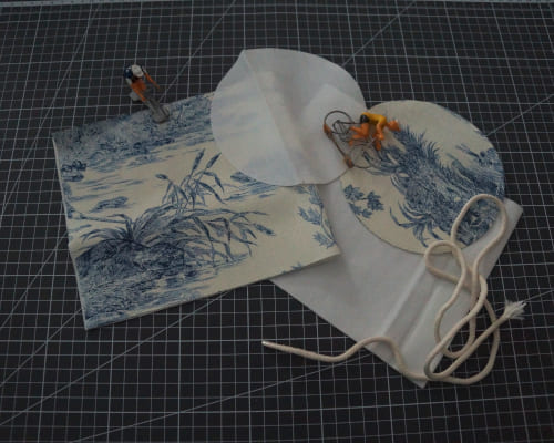 Pour mon pochon, j’ai tapé dans mes chutes de tissus. J’ai pris une toile de Jouy pour l’extérieur et un reste de popeline blanche pour l’intérieur. Et si tu le souhaite, tu peux aussi faire une version réversible. J’expliquerai comment faire dans ce tuto du pochon rond 😉.